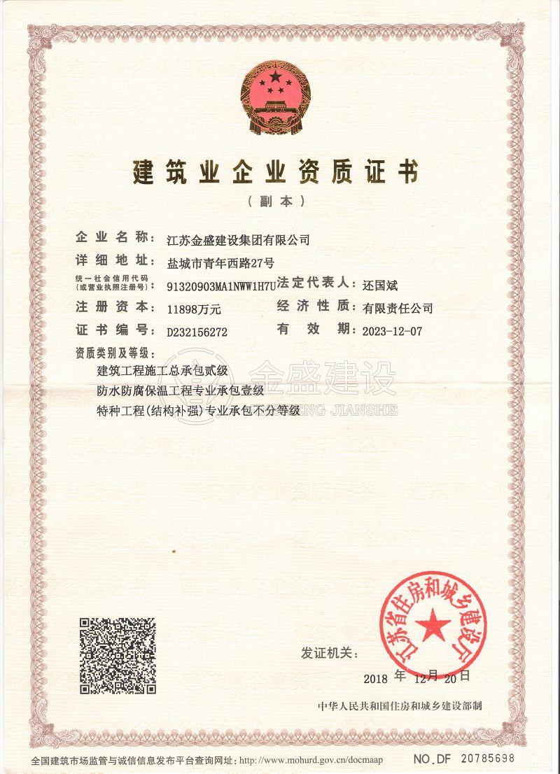 • 施工總承包貳級新防水防腐保溫工程專業承包一級